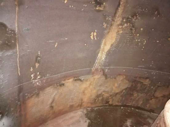 其中外面的金屬腐蝕將近穿孔。